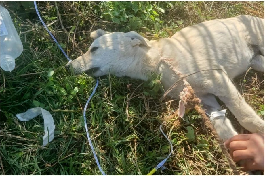 Immediate care and treatment provided to an injured stray dog, reflecting our commitment to animal welfare.
